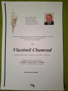 Zemřel Vlastimil Chamrad 12.2.202612.2.2026 od autora: Lumír Balhar Hluboce zarmoucení informujeme, že nás v pondělí 16. února navždy opustil náš bratr, kamarád, kolega a bývalý velitel naší jednotky pan Vlastimil Chamrad.
